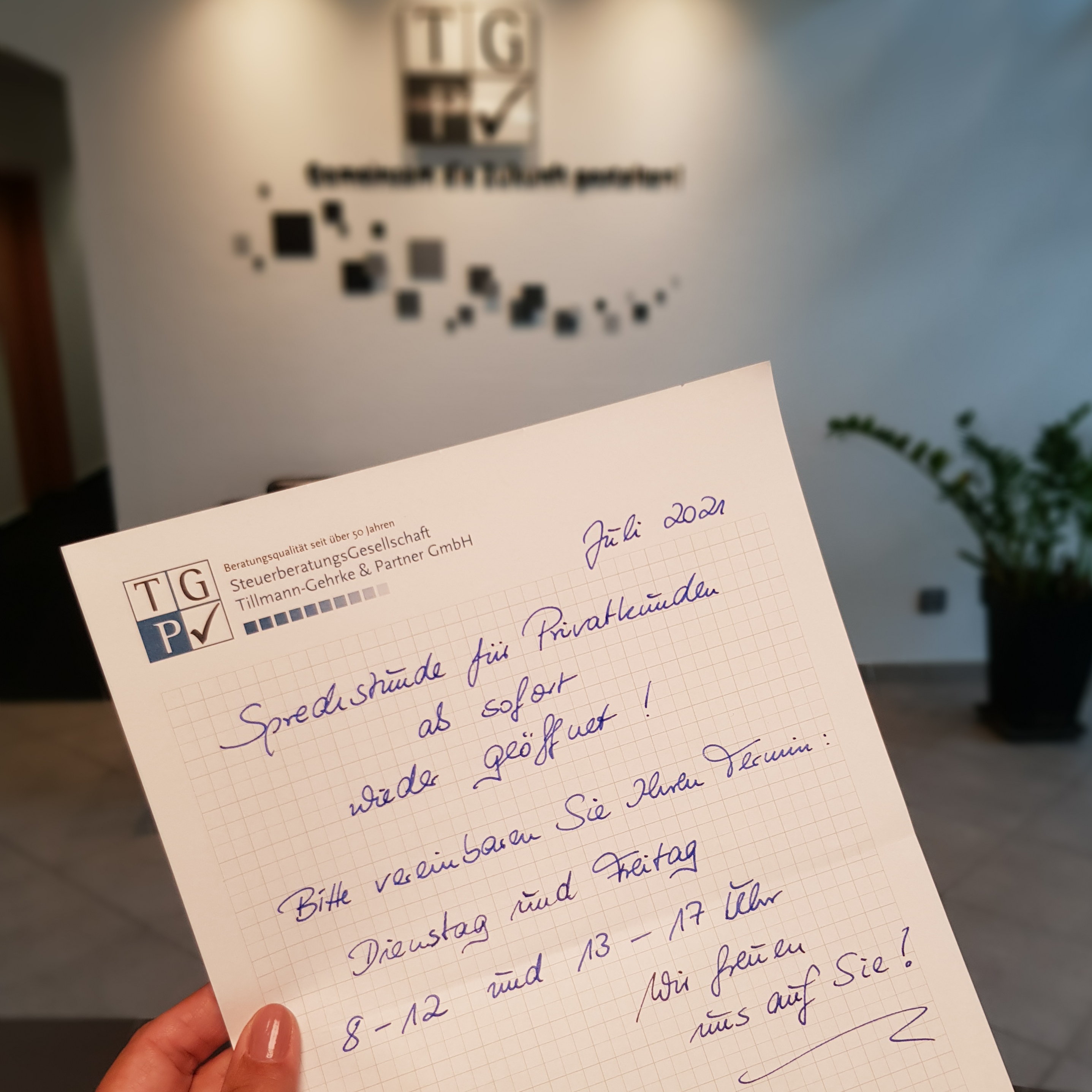 Unsere Sprechstunde für Privatkunden ist ab sofort wieder für Sie geöffnet.