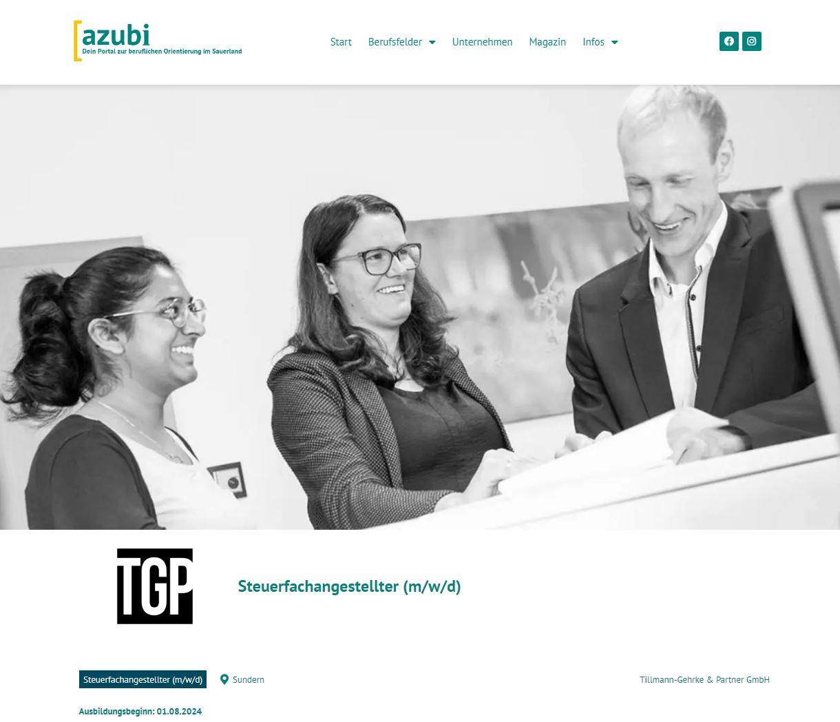 Seit kurzem sind auch wir auf dem Portal azubi-sauerland.de vertreten und bieten dort unsere Ausbildungsstellen für 2024 an.