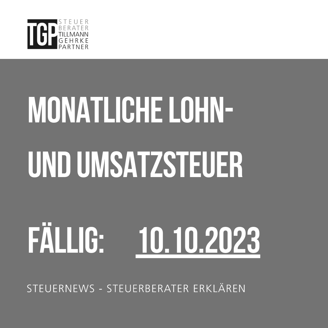 Für Oktober gelten folgende Fälligkeiten, an die wir Sie erinnern möchten: