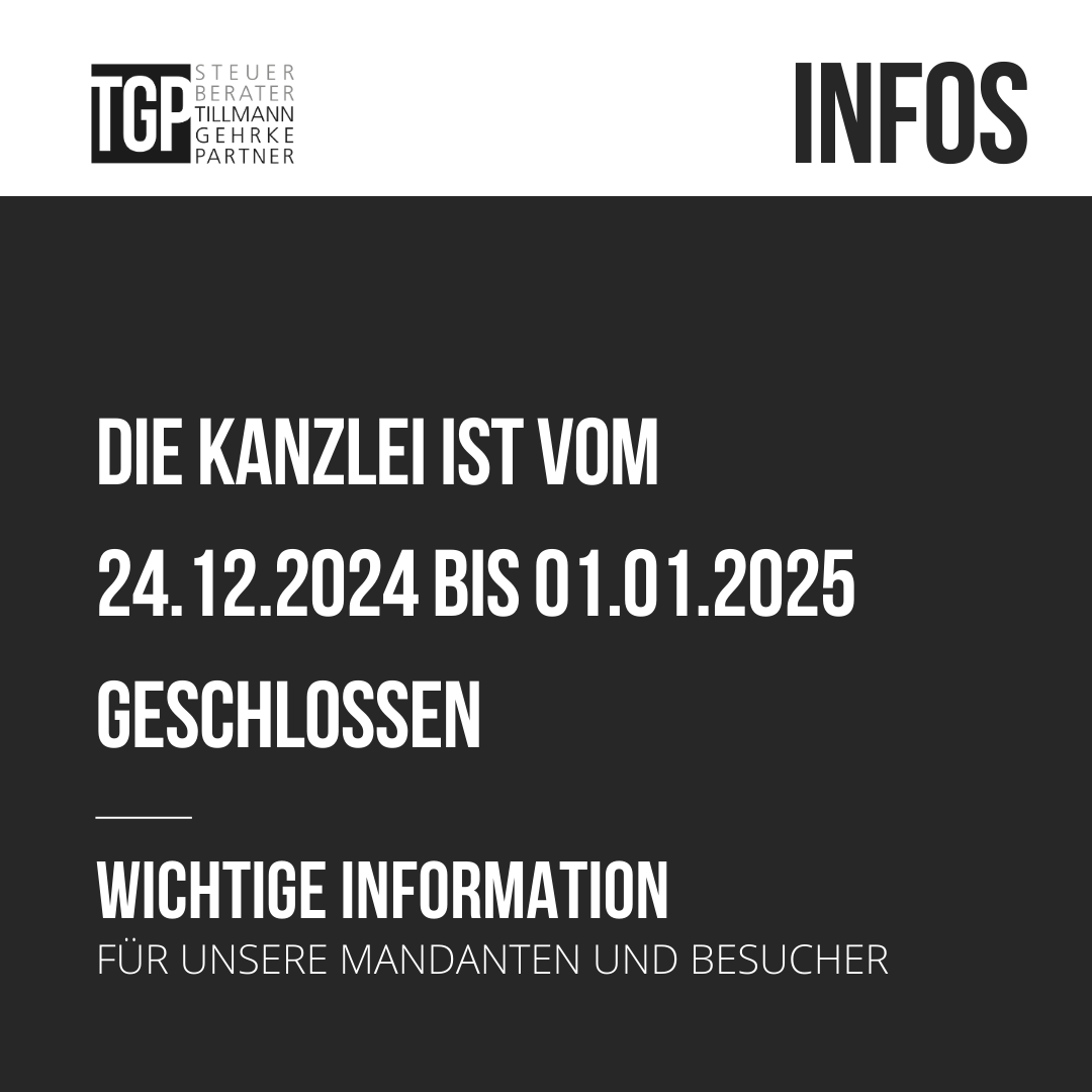 Unsere Kanzlei bleibt über die Feiertage vom 24.12.204 bis 01.01.2025 geschlossen.