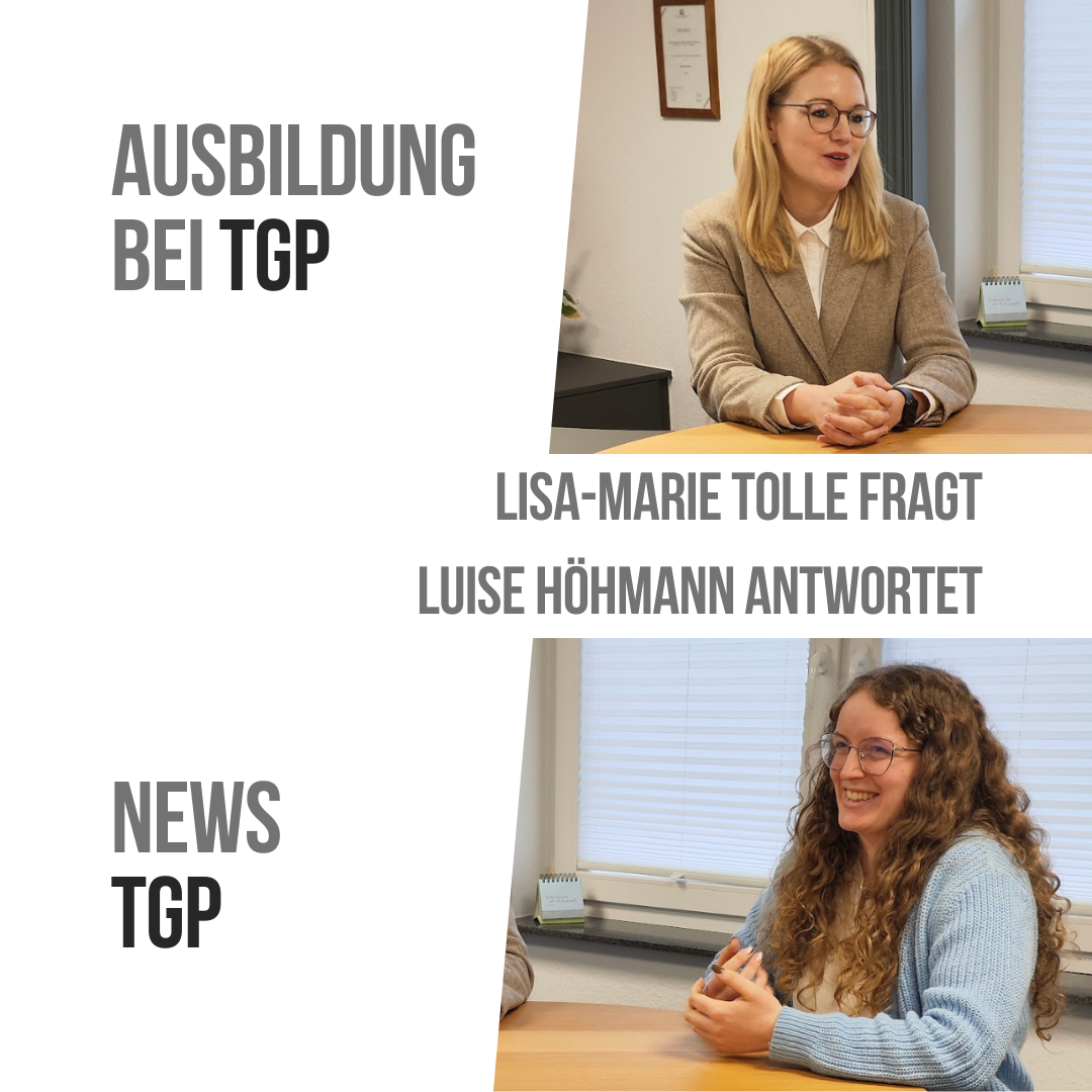 In einem kurzen Interview gibt sie Antworten auf die Fragen von Lisa-Marie Tolle, der für die Ausbildung bei TGP zuständigen geschäftsführenden Gesellschafterin.